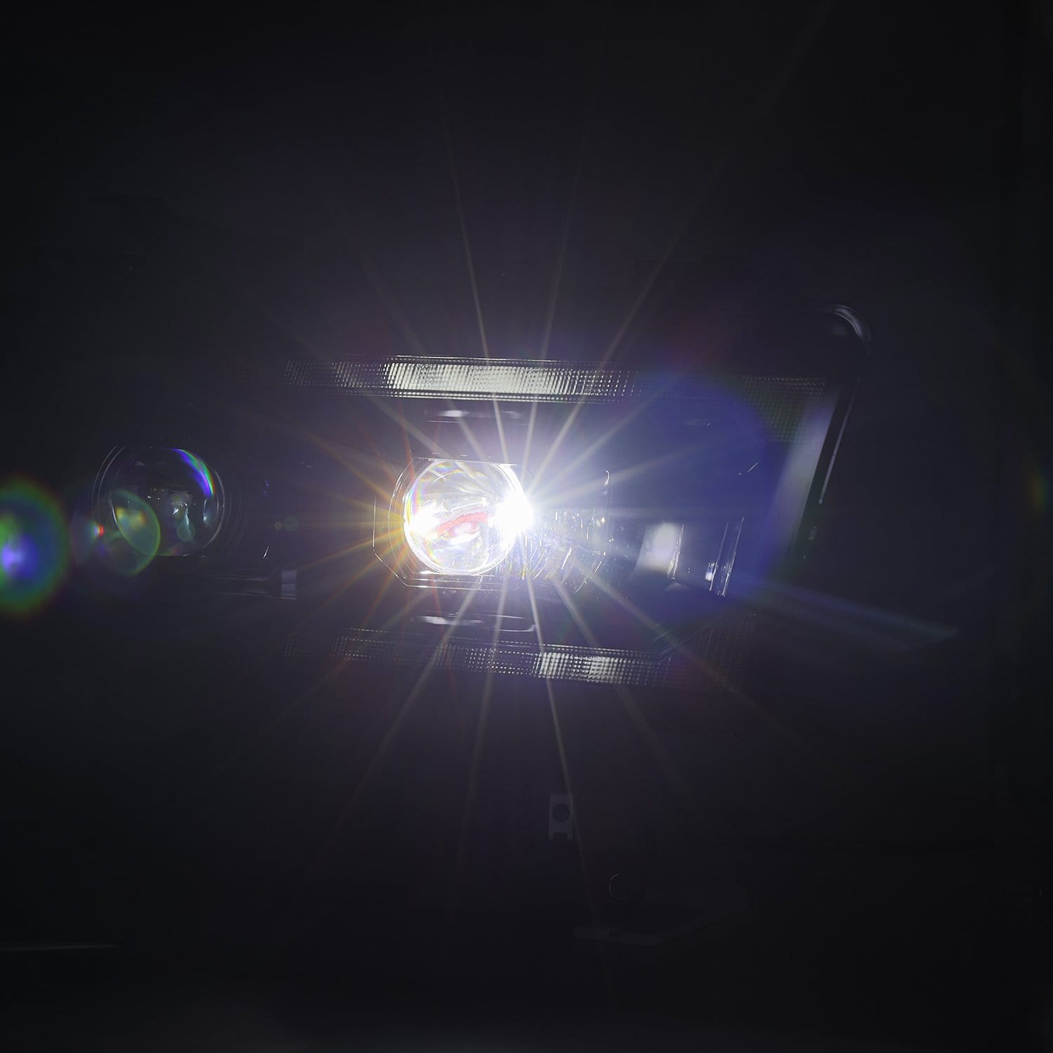 At the heart of our 5th gen Ram 2500/3500/4500/5500 NOVA-Series projector headlights is our signature 3D ice-cube projector lens, renowned for its precision and clarity. The quad projector configuration ensures optimal lighting performance, with each projector fulfilling a specific role to illuminate the road ahead.