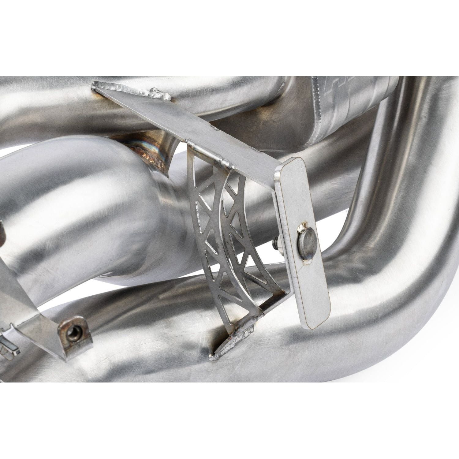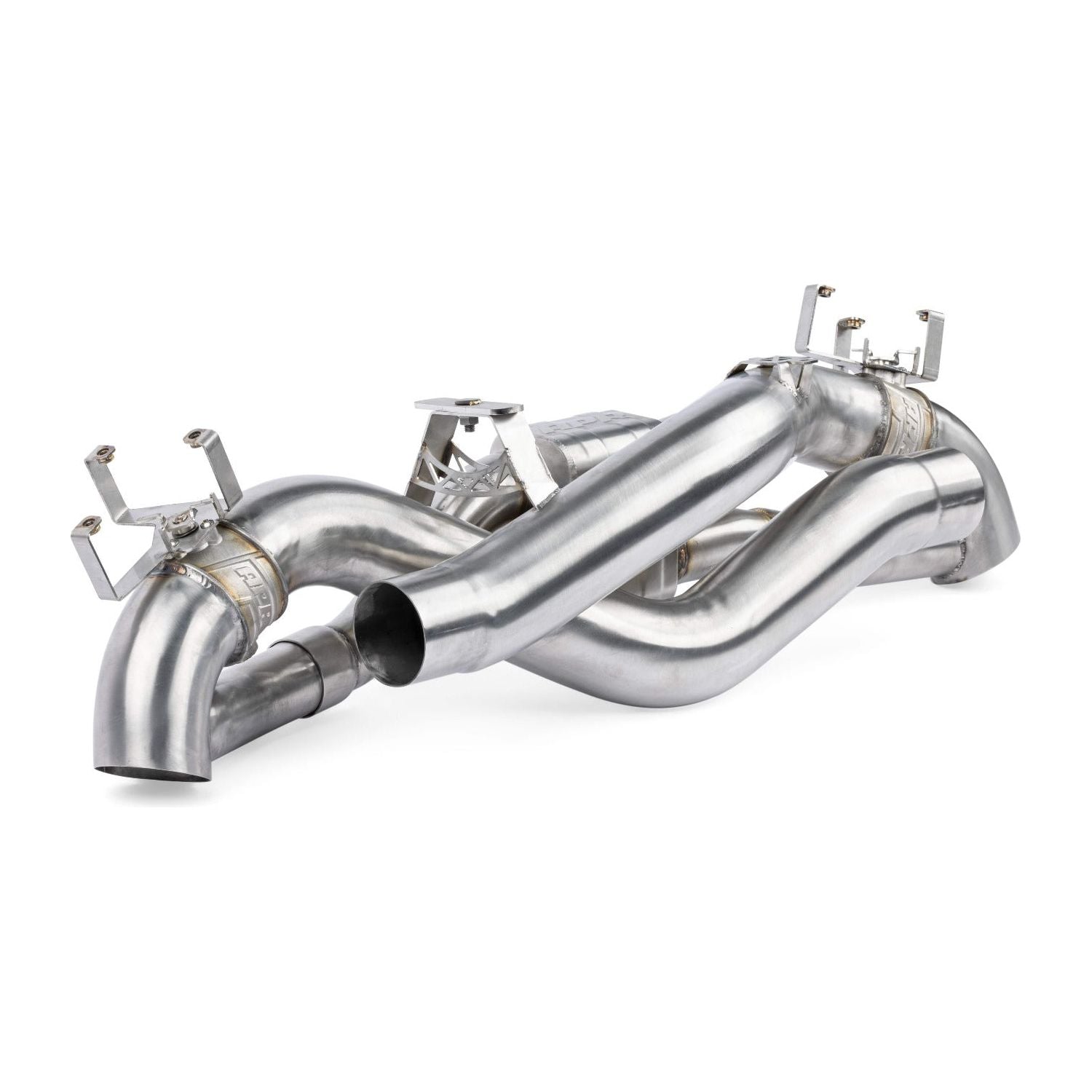 Our premium catback exhaust system for the Porsche 911 (992) is a full T304 stainless steel system with quad exits. It features dual 3" & 2" exhaust paths that creates an exhaust note that's sure to turn heads! The cross sectional area on the non-valved paths are 66% larger than stock, and the valved paths are 19% larger. Yet despite this, the system weighs 37% lighter than the upgrade Porsche Sport Exhaust (PSE)! The short valved paths let the system scream at wide open throttle with minimal backpressure and maximum exhaust velocity through the system, which is exactly what a turbocharged engine wants. And when cruising, the valves close, allowing the system to act civilized with enough growl to let you know it's there. Of course everything in the system is high quality. All tubing is brushed T304 stainless steel with mandrel bends and TIG welding throughout. The exhaust valves are cast and feature premium components. The mounting brackets are CNC-bent and CNC-laser cut for a precision fit. All this makes for a premium system that's simple to install, is larger than stock, weighs less than stock, and sounds amazing in every scenario.