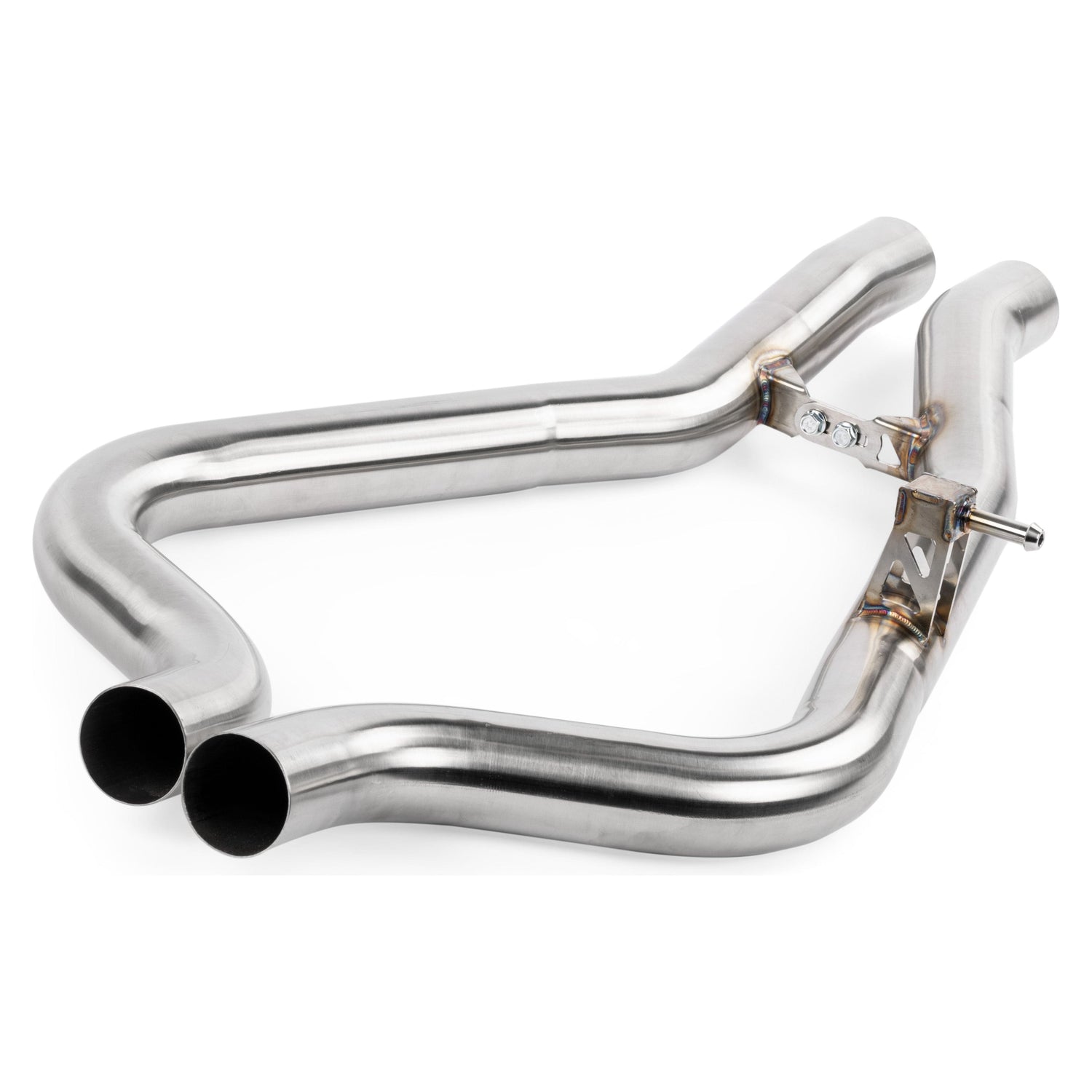 Our system features two valves that allow control of the volume of the system via the factory exhaust valve actuators. In doing so, the system can go from tame to aggressive instantly! Unlike pneumatic systems, and other common valves found in the market today, our system maintains identical OEM operation all the way down to the factory valve actuation angles. Furthermore, the system is fully compatible with exhaust remotes, allowing end users to manually open the system at the click of a button. We cast the valve housings out of T304 stainless-steel. Internally the system uses CNCmachined T303 components and brass bushings, which have stood up to our extreme torture testing. All necessary hardware is welded into place and is designed to combat heat and vibration for years to come.