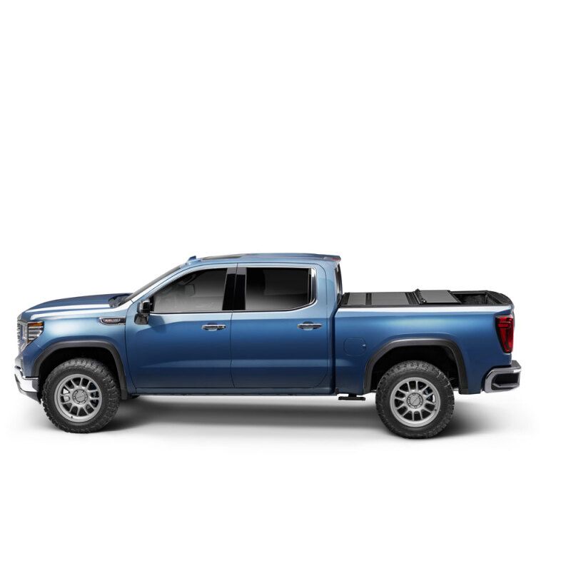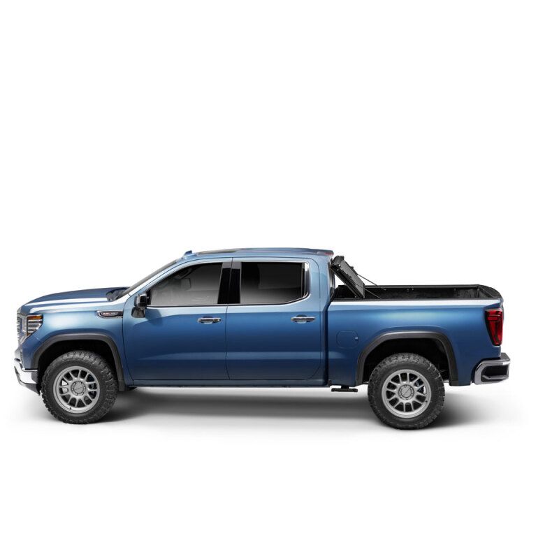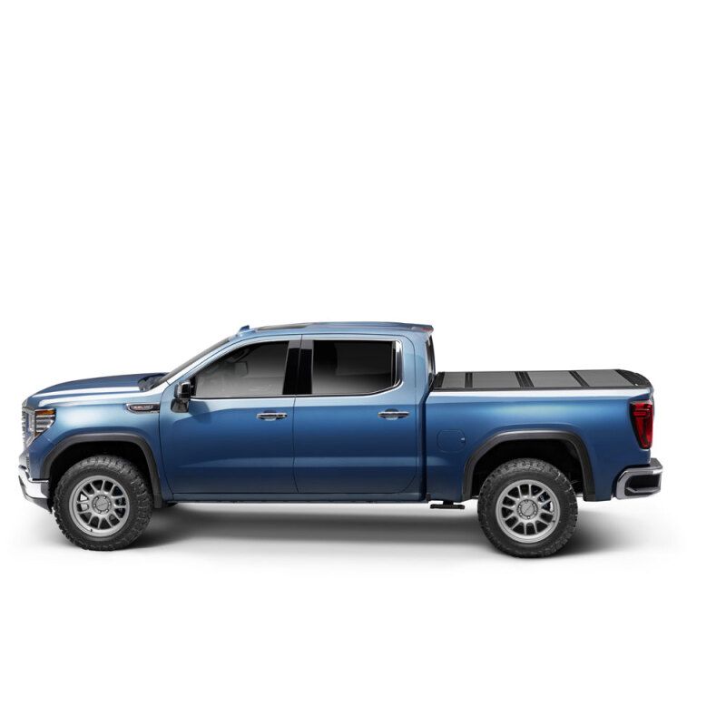 The best-selling truck bed cover in the world just got better.Introducing the new and improved RealTruck BAKFlip® MX4 (GEN 3)—an evolution of RealTruck's most popular tonneau cover. This next-generation upgrade builds on everything truck owners already love about MX4, now enhanced with improved functionality, greater durability, and elevated security.The new and improved BAKFlip MX4 is constructed primarily from alloy materials, including heavy-duty aluminum top panels and side rails. Reinforced with high-density polymer cores, each panel delivers a 22 percent increase in overall strength compared to the original model.Security is also enhanced. In addition to BAK's patented auto-latching system, which automatically secures the cover when closed, the BAKFlip MX4 (GEN 3) features re-engineered lock components for improved resistance to forced entry compared to the GEN 2. No matter the cargo you're transporting, you can rest assured knowing your gear's protected.When the weather turns, the BAKFlip MX4 (GEN 3) holds strong. Revised EPDM rubber perimeter seals and tight-fit clamps provide our best seal yet, preventing seepage between the bed cover and bed rails. At the rear of the cover, a 13 percent longer dual-action tailgate seal provides weather protection for the tailgate. This innovative design also improves operation, maintaining factory tailgate functionality regardless of the cover's position.The BAKFlip MX4 isn't only durable, it's also sleek and stylish. Unlike competitors, the BAKFlip MX4 sits flush with your pickup's bed rails, practically disappearing into your truck's profile. And with a sleek, textured matte black finish across all surfaces, the MX4 looks great whether open or closed.