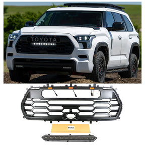 This Toyota Sequoia TRD PRO Grill is made of strong and durable ABS material with OEM fittings for 2022 Toyota Sequoia. The grill design allows more air flow to the engine and provides a unique look.