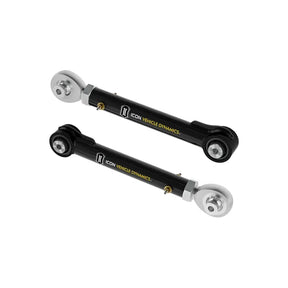 The ICON Tubular Rear Upper Link System helps free up rear axle movement on the 2022-2024 Toyota Tundra, 2023-2024 Toyota Sequoia, 2024 Toyota Tacoma, and 2024 Toyota Land Cruiser 250 Series to allow for increased suspension travel and articulation. Formed using 1 ¾” x .313 wall DOM Tubing for high strength, with CNC machined threaded ends and bushing housings, and feature a multi-stage black powder coat finish. These upper links are designed with massive FK Rod End at one end, along with a dual-durometer, high angle greaseless bushing at the other end yields the best combination of maximum travel and articulation while isolating and damping road noise and vibrations. The quality rod ends and bushings featured in these link arms allow the vehicle’s suspension to function as intended, without the bushing bind that limits the vehicle in stock form. Hit the trail with the confidence of knowing your suspension components are covered by ICON’s Limited Lifetime Warranty.