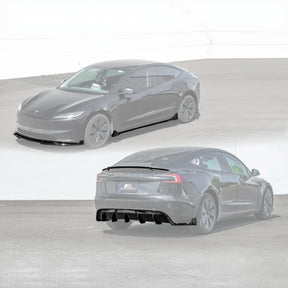 Fits all 2024+ Tesla Model 3 Highland models. Includes Performance Track Style body kit in glossy black finish. Made from durable ABS plastic. Enhances aerodynamics and adds aggressive styling.