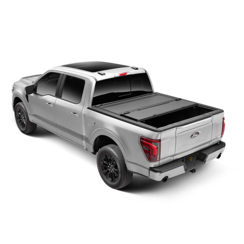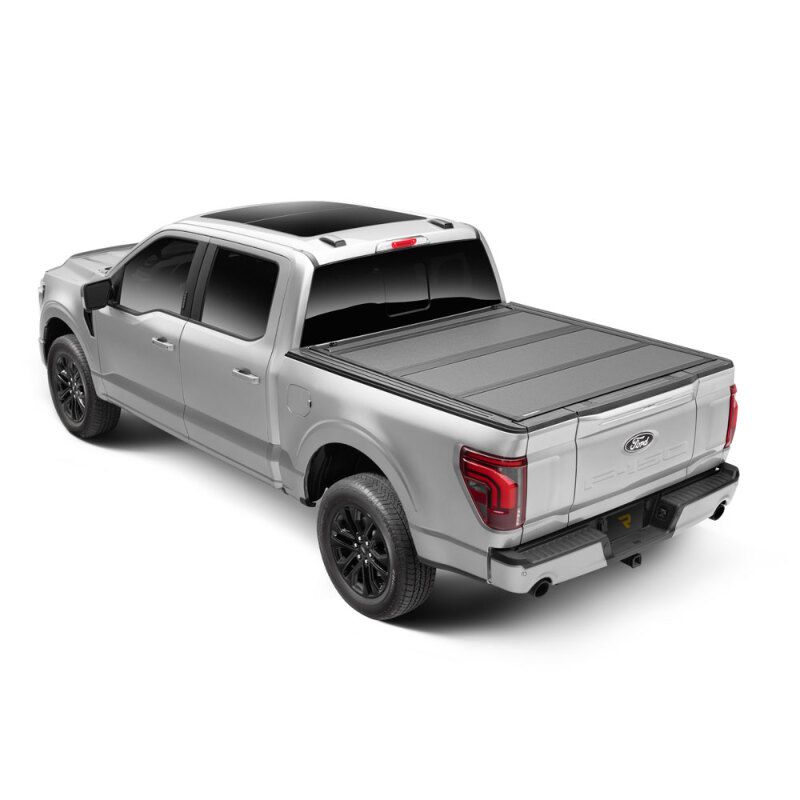 The best-selling truck bed cover in the world just got better.Introducing the new and improved RealTruck BAKFlip® MX4 (GEN 3)—an evolution of RealTruck's most popular tonneau cover. This next-generation upgrade builds on everything truck owners already love about MX4, now enhanced with improved functionality, greater durability, and elevated security.The new and improved BAKFlip MX4 is constructed primarily from alloy materials, including heavy-duty aluminum top panels and side rails. Reinforced with high-density polymer cores, each panel delivers a 22 percent increase in overall strength compared to the original model.Security is also enhanced. In addition to BAK's patented auto-latching system, which automatically secures the cover when closed, the BAKFlip MX4 (GEN 3) features re-engineered lock components for improved resistance to forced entry compared to the GEN 2. No matter the cargo you're transporting, you can rest assured knowing your gear's protected.When the weather turns, the BAKFlip MX4 (GEN 3) holds strong. Revised EPDM rubber perimeter seals and tight-fit clamps provide our best seal yet, preventing seepage between the bed cover and bed rails. At the rear of the cover, a 13 percent longer dual-action tailgate seal provides weather protection for the tailgate. This innovative design also improves operation, maintaining factory tailgate functionality regardless of the cover's position.The BAKFlip MX4 isn't only durable, it's also sleek and stylish. Unlike competitors, the BAKFlip MX4 sits flush with your pickup's bed rails, practically disappearing into your truck's profile. And with a sleek, textured matte black finish across all surfaces, the MX4 looks great whether open or closed.