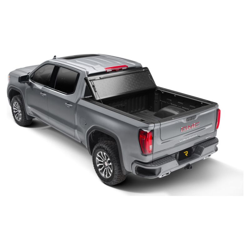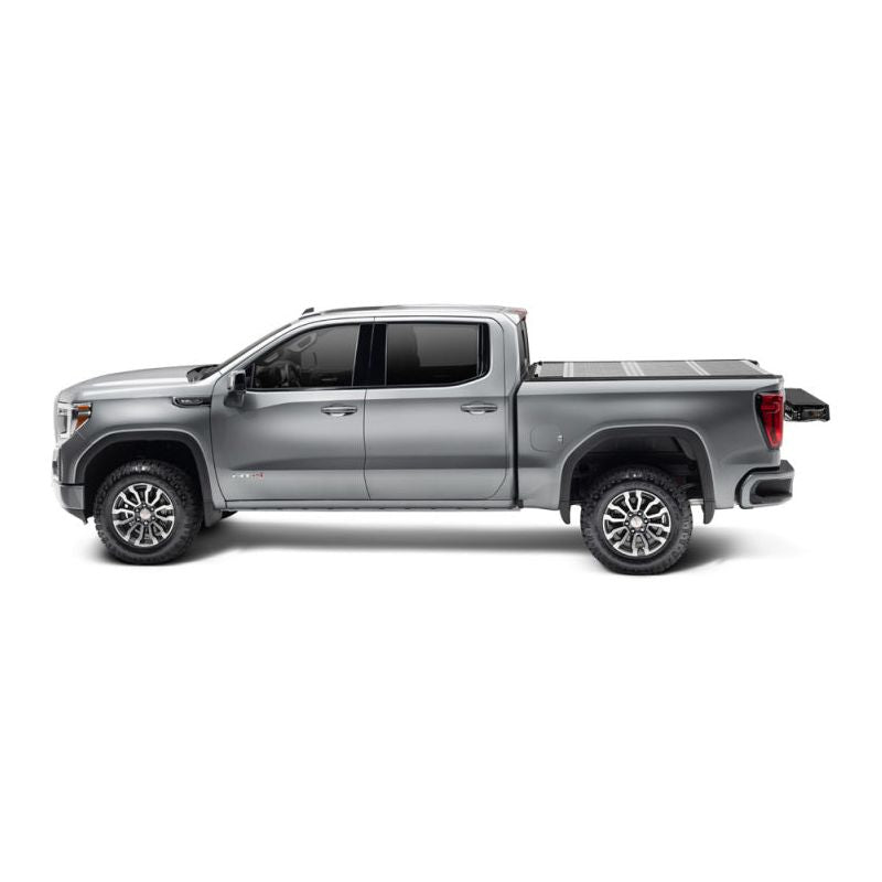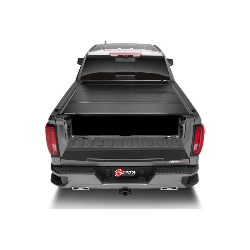 The BAKFlip F1 hard folding truck bed cover comes equipped with an FRP (Fiberglass Reinforced Polymer) top surface, providing superior dent, ding and scratch resistance. The heavy-duty aluminum panels that line the underside give the cover its strength and durability. Together, these make the F1 our top of the line BAKFlip, offering a stylish and secure cover for the long haul. The F1’s rugged design is made to perform in severe working and weather conditions. Rain, hail or snow - the F1 has you covered. Quickly and easily fold and lock the cover in the flipped up position for hauling large loads. The F1’s advanced infrastructure and upgraded components provide unrivaled strength and security, and are backed by an extended 3-year warranty.
