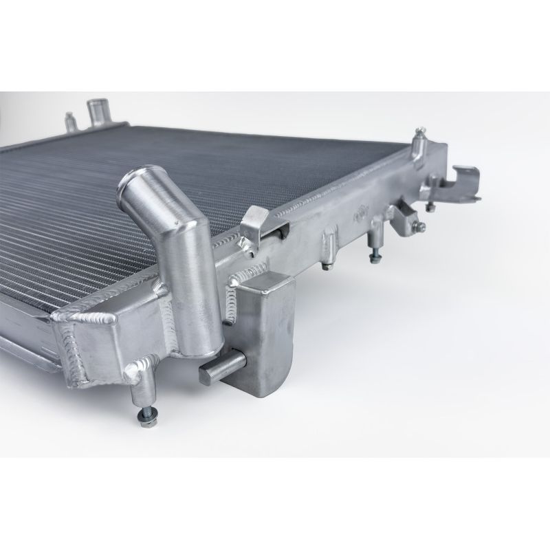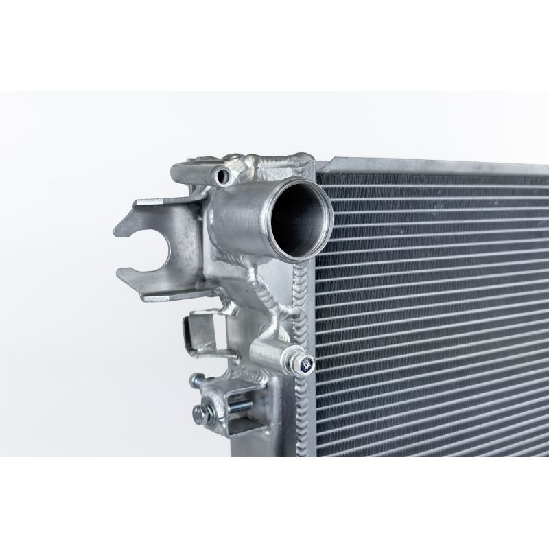 An upgraded radiator helps eliminate the concern of overheating. These advanced designs feature larger 2-Row, 42mm aluminum cores which increase the fluid capacity of the radiators, and greatly improves heat dissipation. CSF's Exclusive B-Tube Technology increases the heat transfer by approximately 15% over regular oval welded tubes. In addition, the ultra-efficient multi-louvered fins maximize airflow through the core for the best possible performance. The result is a dramatic temperature reduction under all driving conditions.