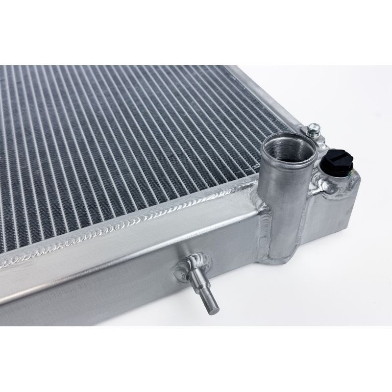The 2-Row 42mm core greatly not only increases the fluid capacity of the radiator, but also improves the cores ability to dissipate heat. CSF's Exclusive B-Tube Technology increases the heat transfer by approximately 15% over regular oval welded tubes. In addition, the super-efficient multi-louvered fins maximize airflow through the core for the best possible performance. More cooling rows also improve the overall efficiency of the radiator. More cooling tubes means more surface area for the coolant's heat to dissipate from.