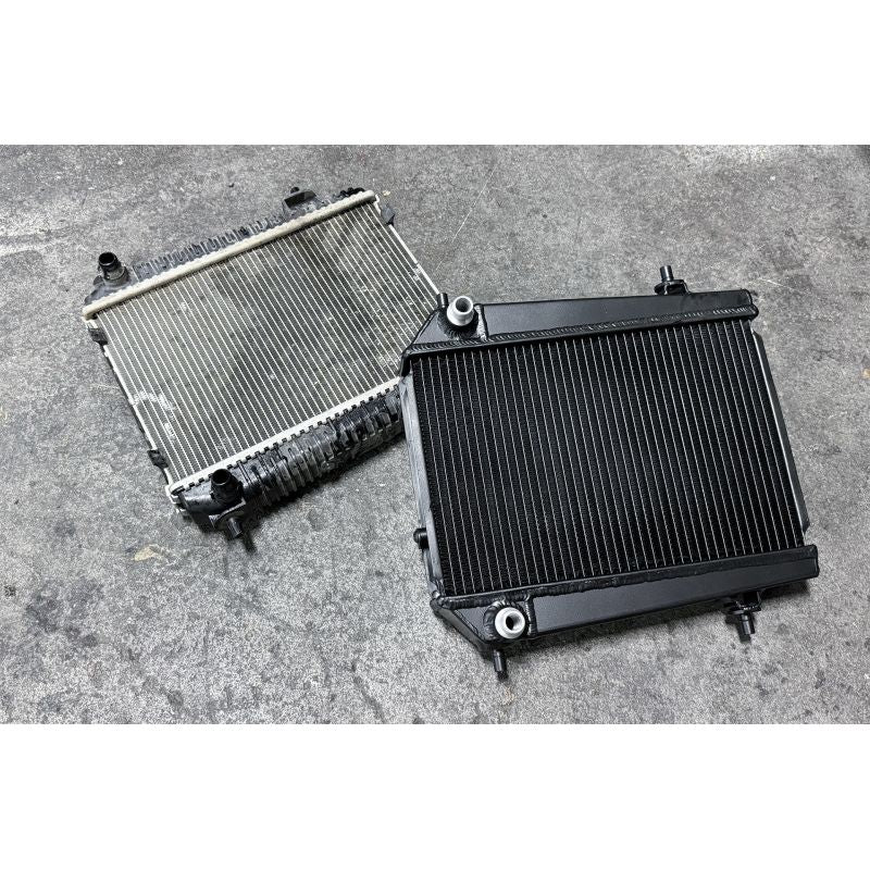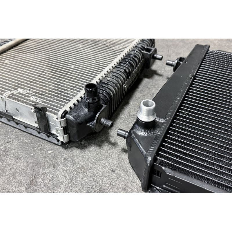 Compared to the OEM G8X coolers, the CSF units are a significant upgrade. The TIG welded aluminum tanks are much larger than the OE plastic tanks offering superior strength and fluid volume. A larger 2-row 42mm core increases cooling efficiency and capacity. This high efficiency core uses CSF's Exclusive B-Tube Technology and latest 5mm fin technology, maximizing airflow and heat dissipation. These 5mm fins significantly increase the heat exchange surface area improving overall cooling efficiency and recovery while still maintaining good airflow.