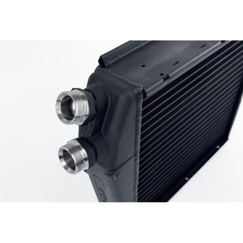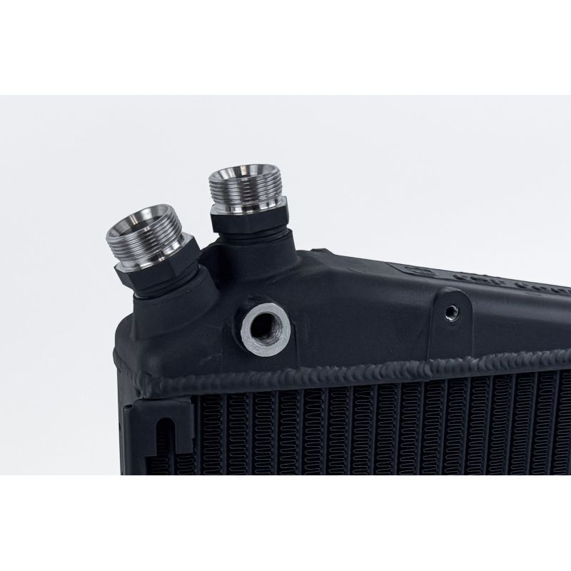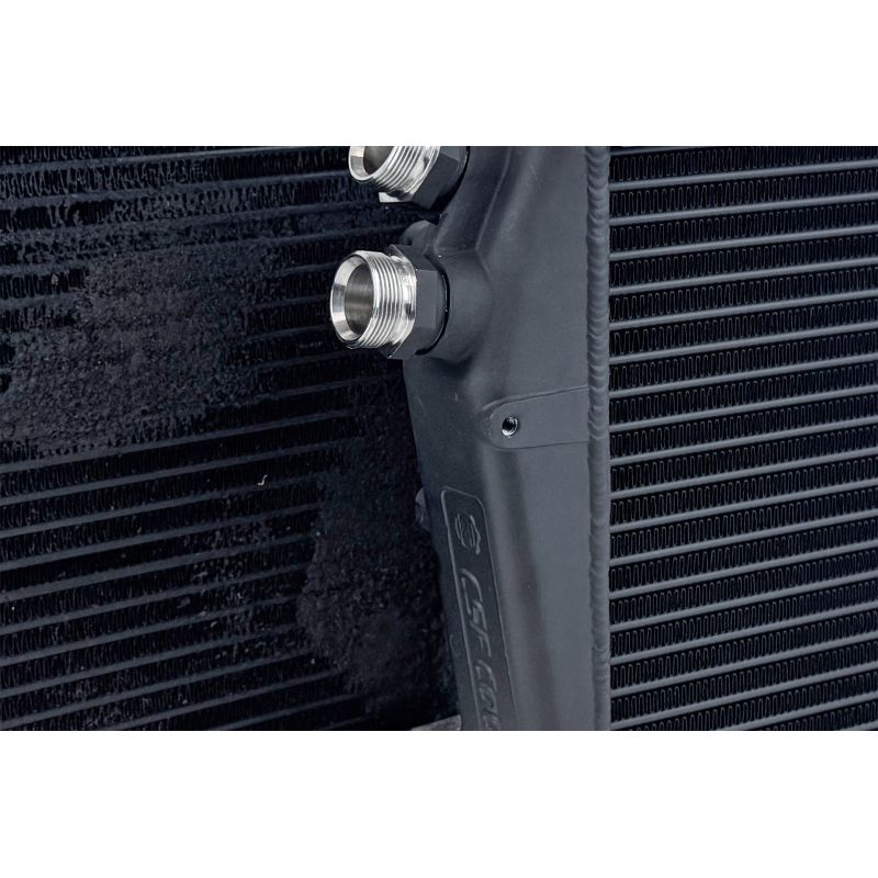 CSF drew additional inspiration from its proven 911/930 Turbo Fender Oil Cooler (#8168), incorporating similarly engineered Widemouth fittings. These precision machined, threaded M30 "Widemouth" fittings are designed with an optimized inner diameter (ID) to dramatically improve oil flow. These fittings deliver up to 50% greater flow capacity compared to OEM connections. Each stainless steel fitting is crafted in-house for superior strength, durability, and long-term reliability under pressure. To ensure a perfect, leak-free seal, CSF pre-installs the fittings with high-quality copper crush washers.