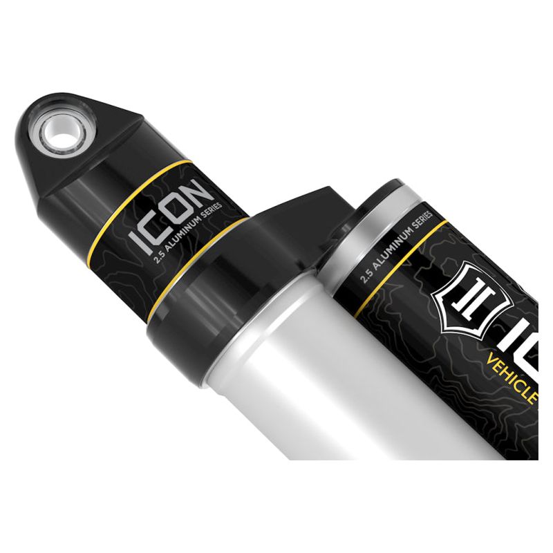 ICON’s 2.5 Aluminum Series shocks are designed and built to give your vehicle outstanding performance off-road and a smooth ride on the street. With a truly vehicle-specific design, these shocks are configured specifically for each application in both length and damping tune. Featuring one-piece impact extruded aluminum cylinders, these 2.5 Aluminum Series shocks offer lighter weight, improved corrosion resistance, and a more uniform finish than traditional plated steel cylinders. Like all ICON shock absorbers, these 2.5 Aluminum Series shocks are 100% rebuildable and 100% revalveable. For piggyback and specific remote reservoir applications, ICON’s unique use of a 6061 billet aluminum manifold a few inches below the top cap of the shock creates an internal “Bump Zone” that when used creates an additional 20% of damping force. This additional force helps prevent harsh bottom-out conditions and controls the suspension effectively when compressing at high velocity. If you are looking for a more user-defined tune, consider looking into the Compression Damping Control Valve (CDCV) shocks.