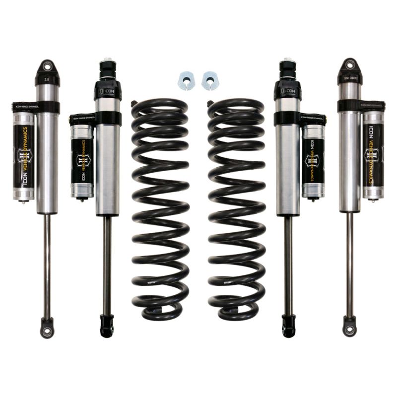 This ICON Vehicle Dynamics 2.5†suspension system is a great way to level your 4WD 2017-UP Ford F250/350 Super Duty while drastically improving ride quality and performance. The Stage 2 system is perfect for on-road and off-road use including towing, job site duty and general off-road adventure. ICON's Stage 2 System is comprised of dual rate coil springs, alignment cams, and ICON 2.5 Aluminum Series front and rear piggyback reservoir shocks. With the endless hours ICON has spent testing and tuning our suspension components and shocks as a complete package, you can rest assured you have the best suspension solution on the market.