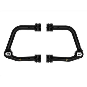 These tubular steel upper control arms free up your 2024 Toyota Tacoma's front suspension movement to allow maximum travel for performance shocks and coilovers at an easier price point compared to our range-topping billet components. Additional caster is built in to correct geometry to allow for better front-end alignment on lifted vehicles. The all-new Delta Joint PRO provides a host of durability and performance improvements compared to our standard Delta Joints, including up to 90° of free articulation to maximize suspension travel without bind. It’s also larger and fully rebuildable. The Delta Joint PRO’s grease fitting is protected by an anodized billet aluminum dust cap, included with the kit. Serviceable Heavy Duty Dual Stage bushings at the frame pivots are greaseable and rebuildable, and fit into precision machined bushing housings to ensure a responsive driving experience. ICON Tubular Upper Control Arms are constructed of heavy wall DOM tubing, CNC formed and fixture welded before receiving our multi-stage semi-gloss black powder coat finish. Includes all components and hardware necessary for a complete install, these tubular UCAs are the perfect front end upgrade for the 2024 Toyota Tacoma.